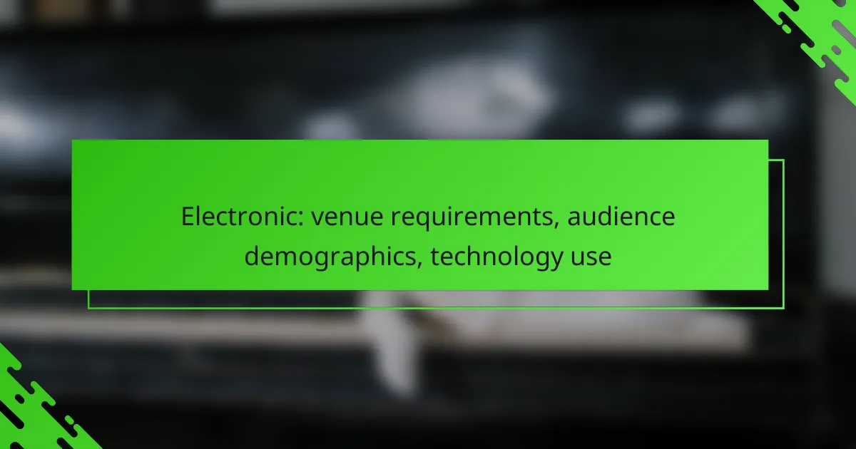 When planning electronic events in Canada, it is essential to consider venue requirements such as capacity, accessibility, and acoustics to ensure a successful experience. Additionally, understanding audience demographics—including age, gender, and income—can significantly influence marketing strategies and engagement. Technology also plays a vital role, enhancing communication and streamlining operations to create a seamless experience for all participants.