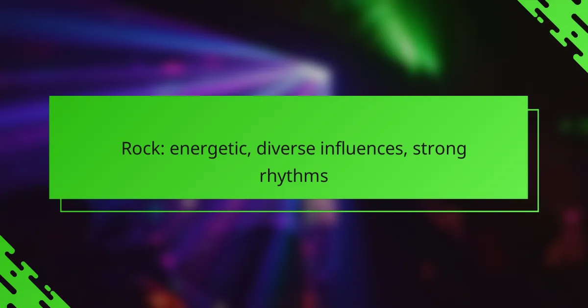 Rock music is a vibrant genre characterized by its strong rhythms and energetic performances, making it perfect for motivating workouts. With diverse influences ranging from blues to punk, rock offers a dynamic sound that captivates listeners and keeps energy levels high. Whether you’re looking for powerful vocals or driving instrumentals, rock’s engaging qualities make it an ideal choice for any energetic activity.